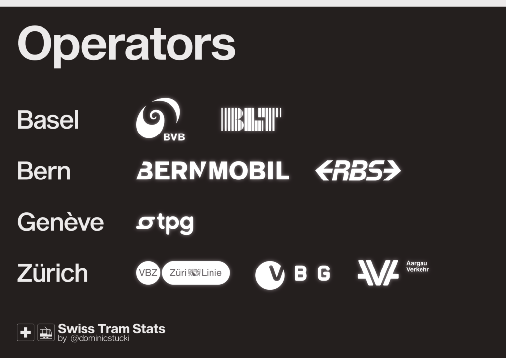 A specialty of Switzerland’s tram networks is, that most of them are run by more than one operator or infrastructure owner. In fact, in all cities except Genève, there is more than one company running trams.