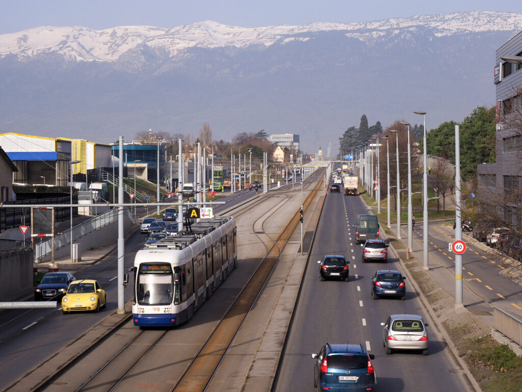 Two of the only three (?) international tram networks are in Switzerland: Genève and Basel. The Basel network connects three countries and three Swiss cantons!