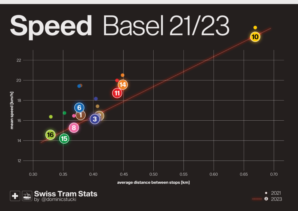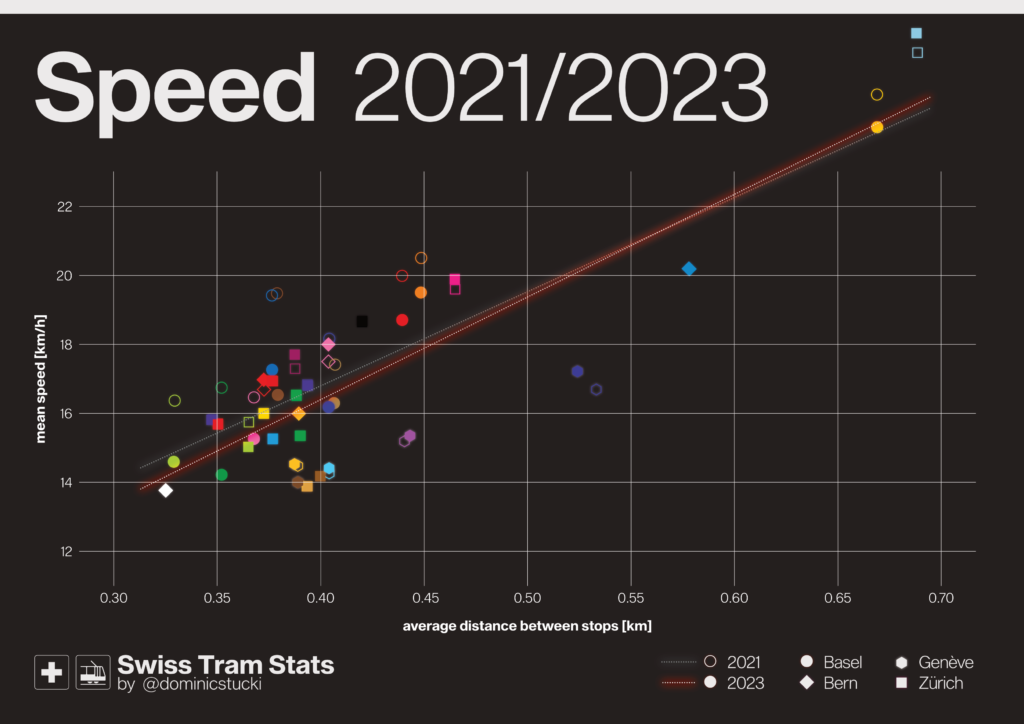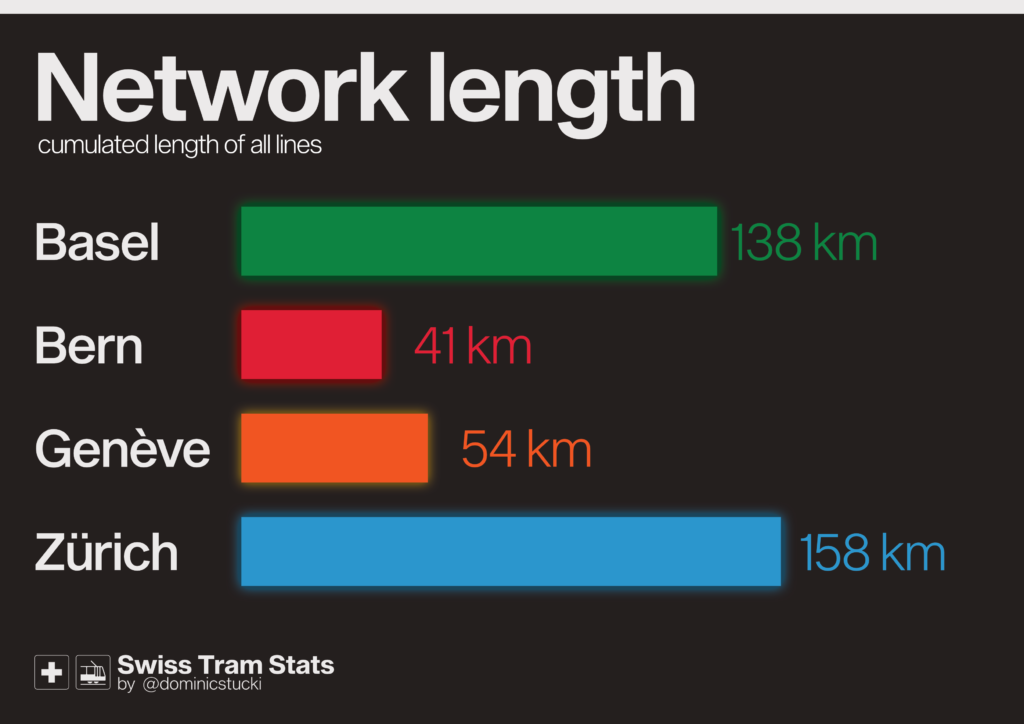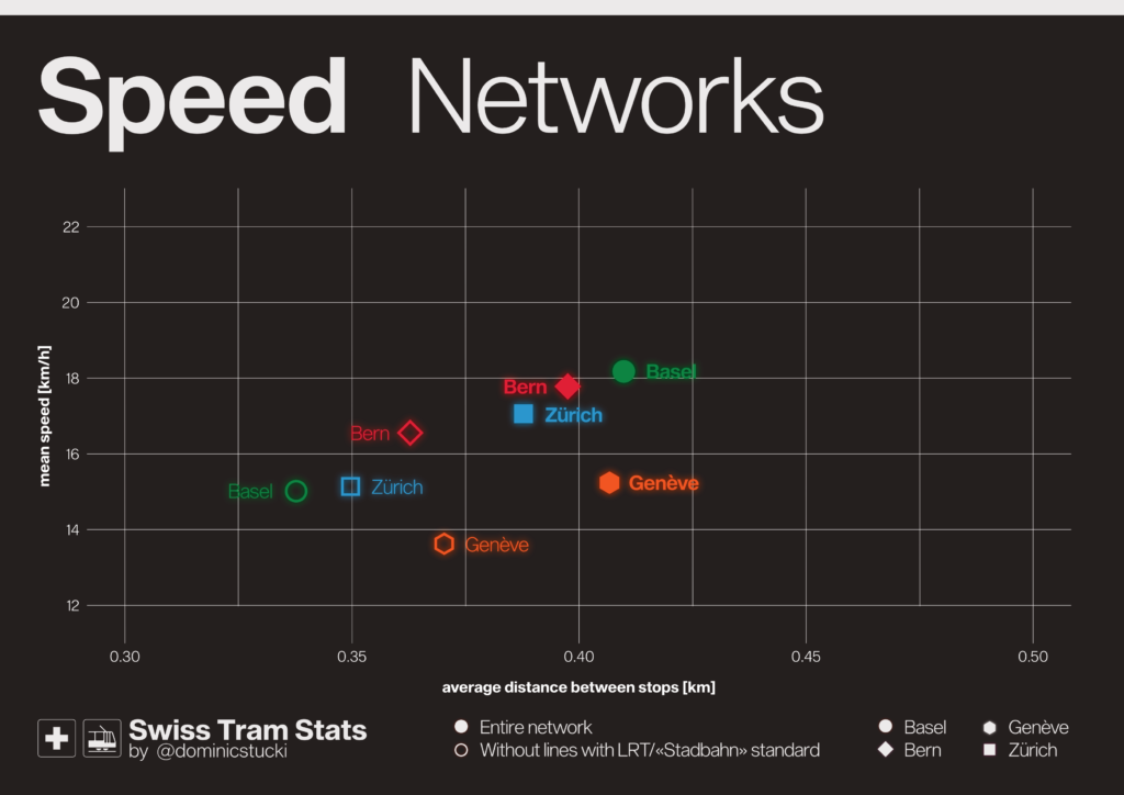 To round it all up, summary on network level. Basel is the fastest overall Network. If you look at classic trams only, Bern takes the crown. Genève is slowest – I hope that this will improve in the future, as the rest of their tram plans are really promising!